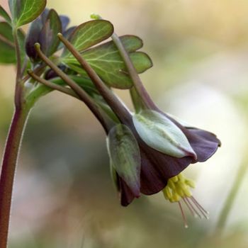 Редкий вид аквилегии. Компактные растения с аккуратными куртинами из разрезных листьев – лучший выбор для бордюров и контейнеров. Нестандартную шоколадную окраску лепестков, с длинными изящными шпорцами на кончиках, подчеркивают вытянутые зеленые чашелистики и пучок пушистых золотистых тычинок в центре цветка. «Шоколадные колокольчики» собраны по 3-7 шт. в рыхлые поникающие кисти. Цветки обладают легким ароматом. Растение лучше растет в притененных местах, к составу почвы – не требовательно.