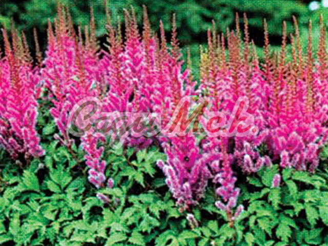 Многолетнее растение из семейства Камнеломковые высотой до 100 см. Листья сложные, тройчато-раздельные, ажурные, блестящие. Цветки мелкие, сиреневые, розовые, реже белые в эффектных плотных соцветиях 30-35 см длиной. Цветет в июне-августе, в течении 30-40 дней. Астильба предпочитает слегка затененные места с суглинистыми почвами. Может произрастать на одном месте до 15 лет. Перед посевом семена стратифицируют, раскладывая на поверхности рыхлой почвы (не заделывая), и накрыв стеклом, помещают в холодное место на 21 день. Проклюнувшиеся семена сажают в горшки в феврале-марте и оставляют в светлом месте, при температуре 18-20 С°. Всходы появляются в течении 2-3 недель. Подросшие растения высаживают в открытый грунт в мае. Астильба, выращенная из семян, зацветает на 2-3 год. Эффектна в групповых, смешанных, бордюрных посадках. Пригодна для выгонки и срезки. Хорошо сочетается с ирисами, хостами, папоротниками.