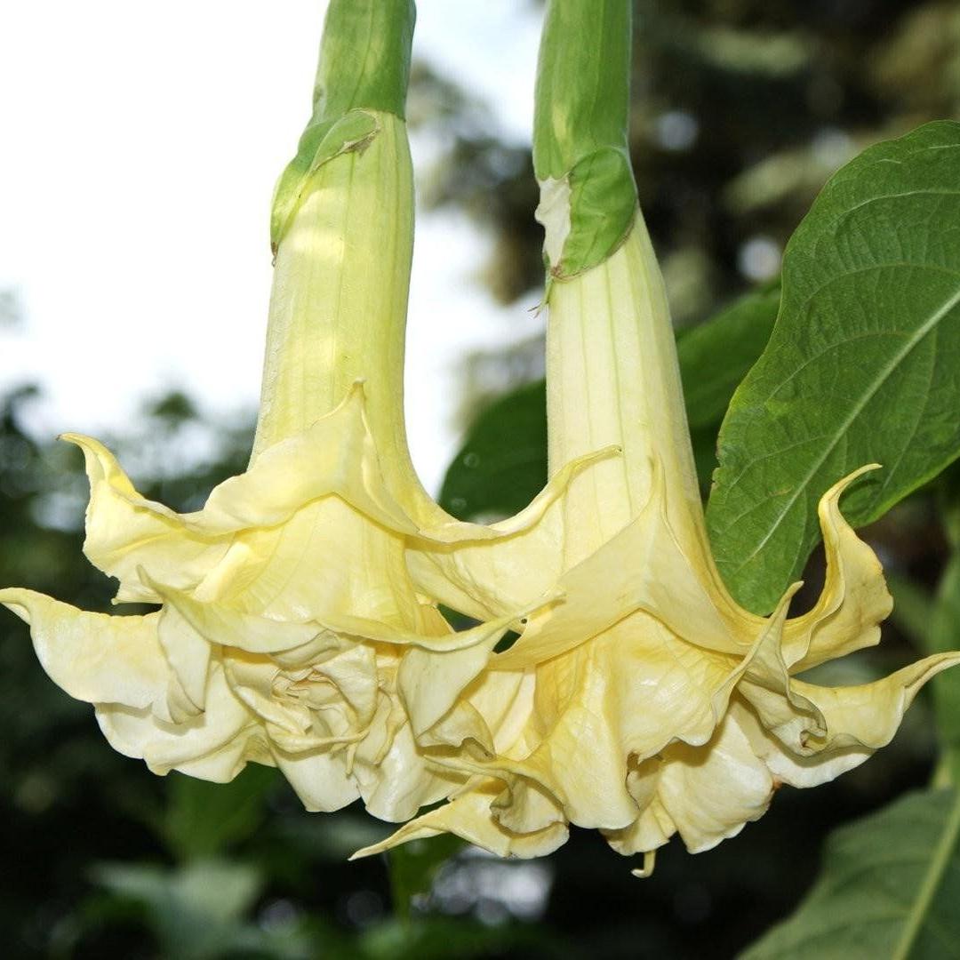 Brugmansia Borner Gold - тропический экзотический кустарник. Особенностью сорта являются двойные немахровые цветки воронкообразной удлиненной формы с заостренными волнистыми лепестками. Лепестки мясистые, нежные, толстые. Окрас цветков желто-салатово-кремовый.