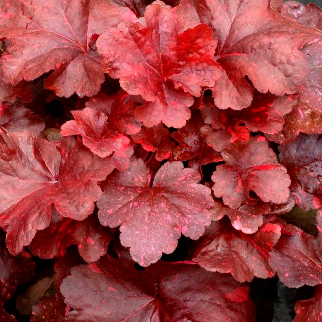 Гейхера Carmen - растение, высота которого варьируется от 40 до 50 см. Его лепестки необычной формы, волнистные, темно-красные по краям, в центре с оранжевым оттенком. Цветет в течение мая - сентября.