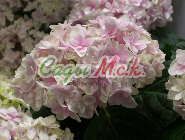 Hydrangea macrophylla 'Sibilla'-Сибилла - кустарник невысокий - до 1 метра, ширина тоже 1 м. Соцветия гигантские (до 30 см). Окраска цветков может изменяться от фиолетового до темно-розового. Период цветения: июнь-август.