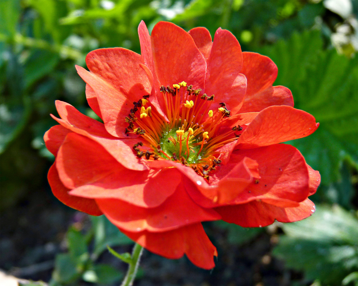Гравилат городской Scarlet отличается соцветиями с полумахровыми цветками. Зацветает вначале лета. Этот сорт нередко цветет и в начале осени.