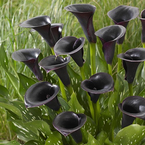 Калла Кантор (Calla Cantor) востребована среди садоводов, ведь они обеспечат эффектное убранство клумб, фонтанов, террас и просто жилых помещений в течение длительного времени с июля по сентябрь. Этот южный многолетник обладает изысканной красотой, вырастает до 50-60 сантиметров. Шикарная и крупная листва имеет вытянутую форму, сочный зеленый цвет с мелкими серебристыми вкраплениями и блестящим лоском. Удивительные цветки воронковидной формы имеют редкий бордово-черный окрас. Каллы идеальны в срезанных букетах. Растение во время роста любит притененные участки на солнце, регулярный полив и подкормку. На зимний период луковицы выкапывают из почвы на хранение.