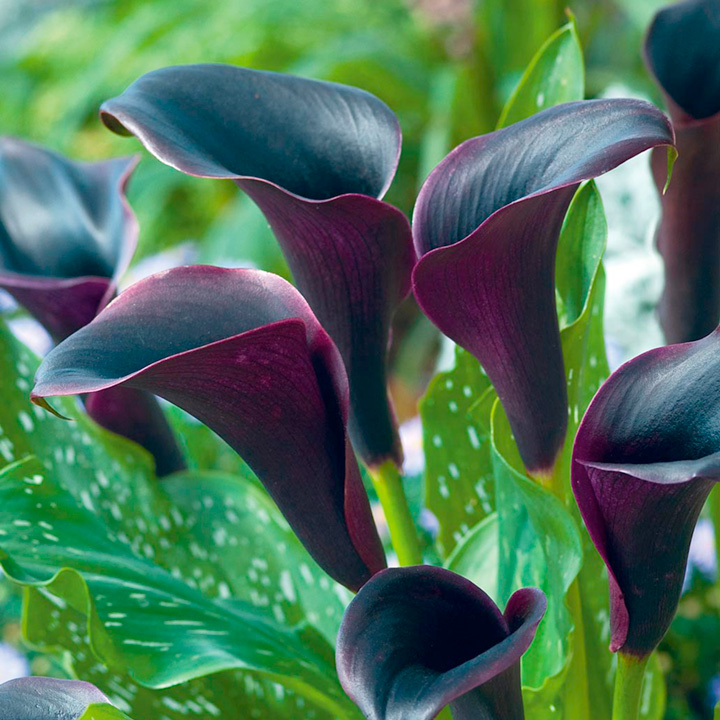 Калла Капитан Палермо – горшечная калла, цветок потрясающего темно-фиолетового, почти черного цвета, среднего размера, 8-10 см, округлой формы. Высота растений до 50 см. Период цветения – июнь-сентябрь. Отлично подходит для выращивания в домашних условиях, в зимних садах и оранжереях.