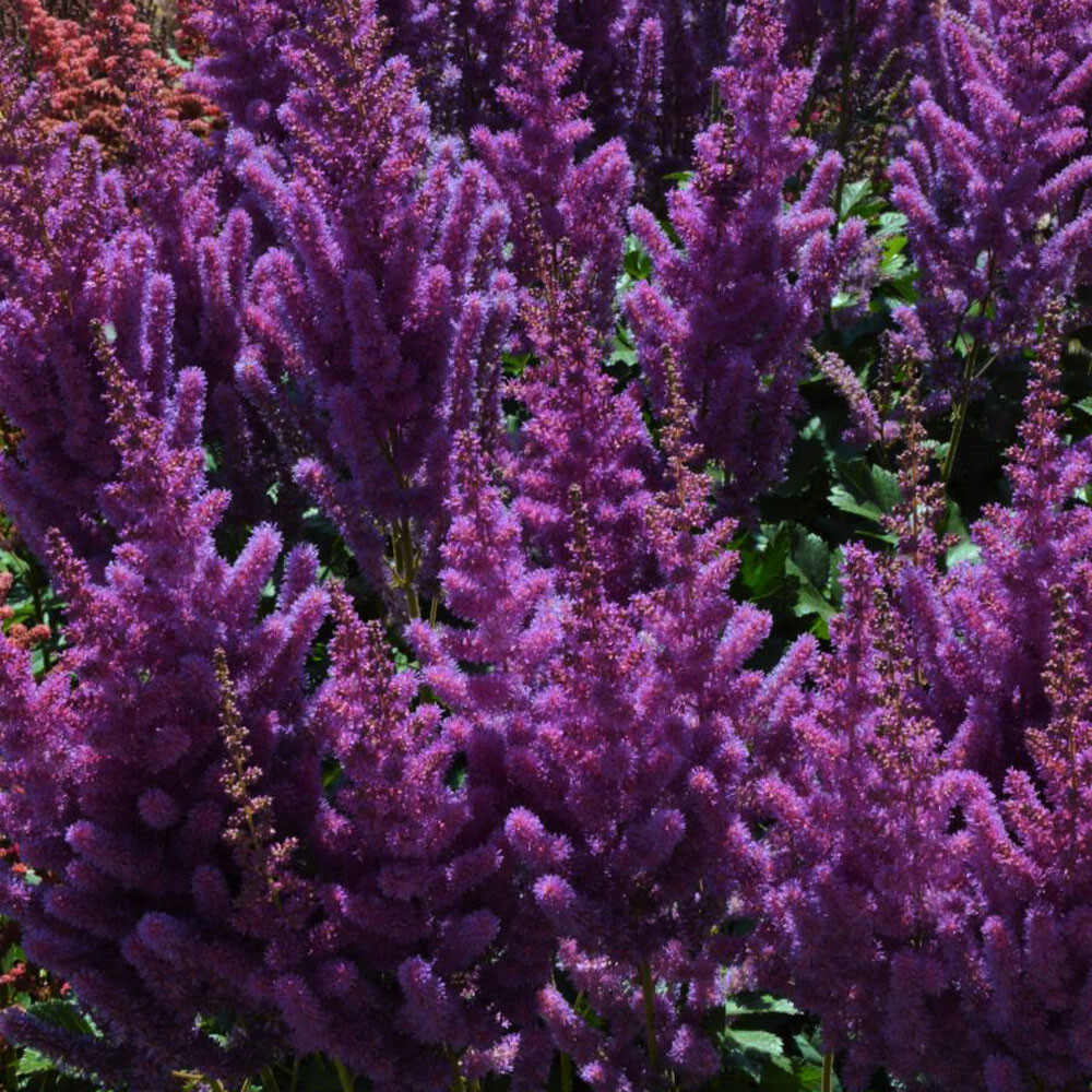 Астильба китайская Блэк Перлз (Black Pearls) в переводе имеет название «Чёрная жемчужина», сорт редок и прекрасен, подобно драгоценности. На высоких цветоносах образуются пышные ромбовидные метёлки ярко-пурпурного оттенка и распространяют неповторимый тонкий аромат. Тёмно-зелёная листва у подножия растения лишь подчёркивает сочный цвет бутонов. Высота астильбы 60 сантиметров. Один куст образует до 6 цветоносов высотой до 80 сантиметров. Соцветия Астильбы китайской Блэк Перлз распускаются в июне, оставаясь декоративными на протяжении месяца.