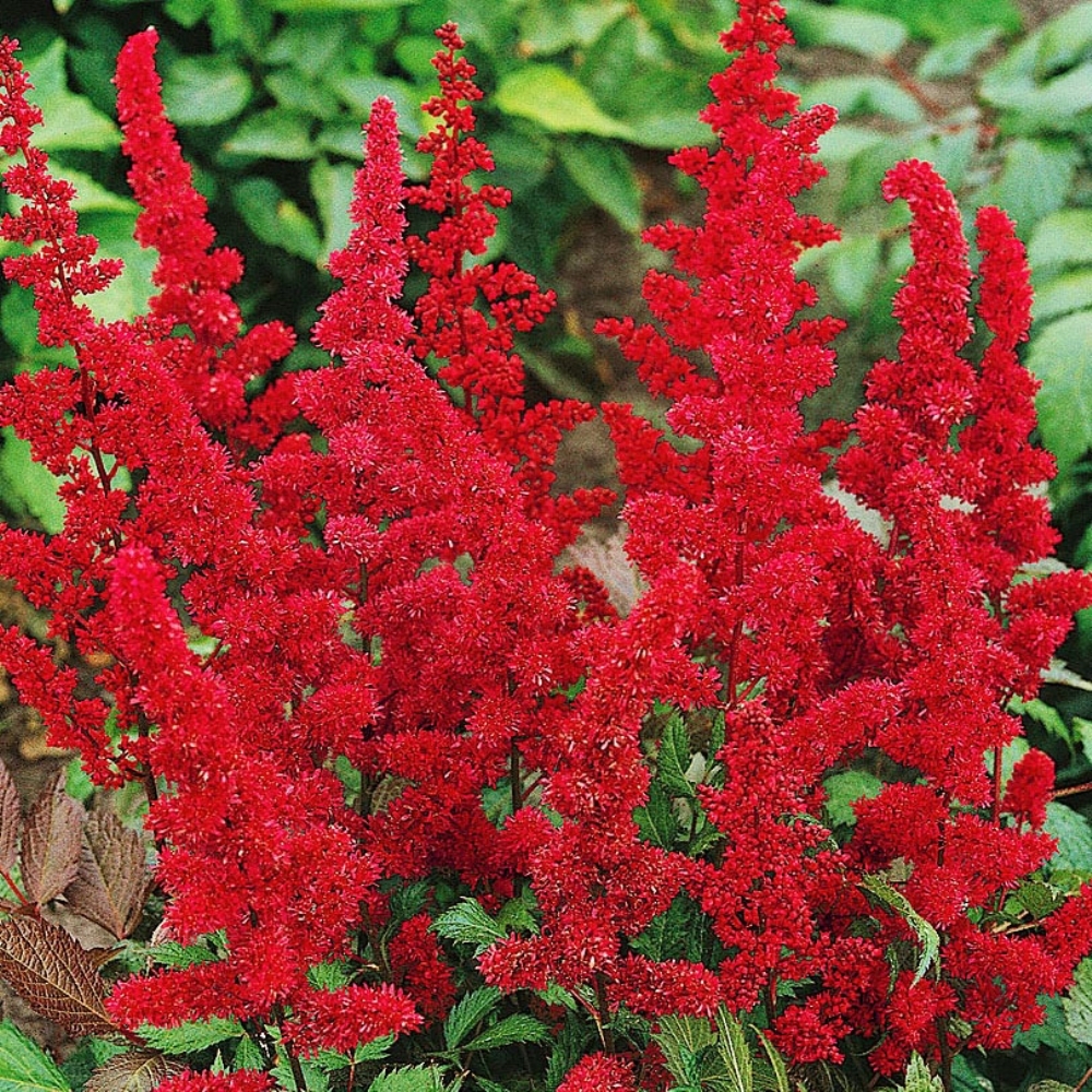 Астильба японская Дюссельдорф (Astilbe japonika Dusseldorf) — это один из наиболее ярких и эффектных сортов. Его главное преимущество — крупные пышные соцветия ромбовидной формы, имеющие насыщенный красный оттенок. Они появляются в июле и сохраняются до конца августа, при этом источают приятный аромат. Взрослый куст может достигать 50 см в высоту. Это многолетнее растение, которое легко переносит перепады температур и застои влаги в почве. Летом Астильба японская Дюссельдорф может расти на затененных участках, а зимой — оставаться в открытом грунте без укрытия. Ее рекомендуется использовать в групповых посадках с хвойными или однотонными лиственными растениями для контраста.