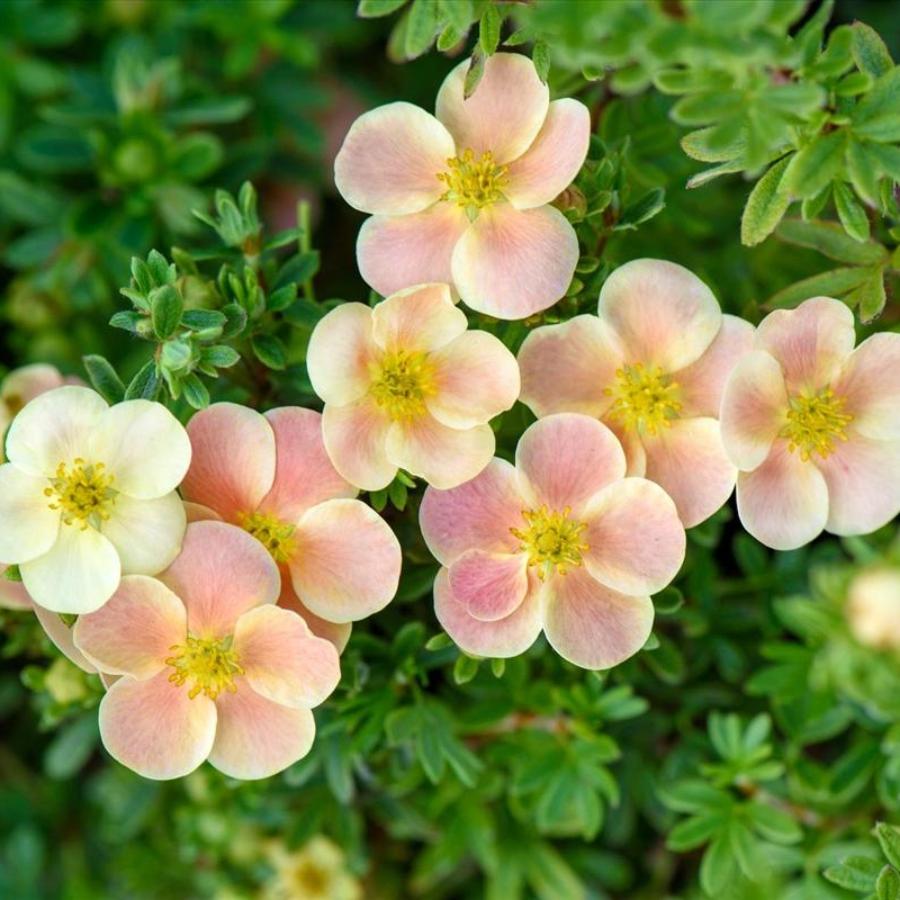 Лапчатка кустарниковая Гламур Гёрл (Potentilla fruticosa, Glamour Girl) вырастает в компактный ветвистый кустарник высотой до 70 сантиметров. Растение применяется для озеленения бордюров, газонов, альпинариев. Эффектно смотрится в одиночной посадке. Распускается двухцветными абрикосово-розовыми цветами, до 5 сантиметров в диаметре, с желтой серединкой. Лапчатка кустарниковая Гламур Гёрл радует обильным цветением с июня до конца сентября. Кустарник выносливый, морозоустойчивый, переносит засуху, не подвергается заболеваниям. Листья нежно-зеленые, на протяжении сезона приобретают серебристое напыление.