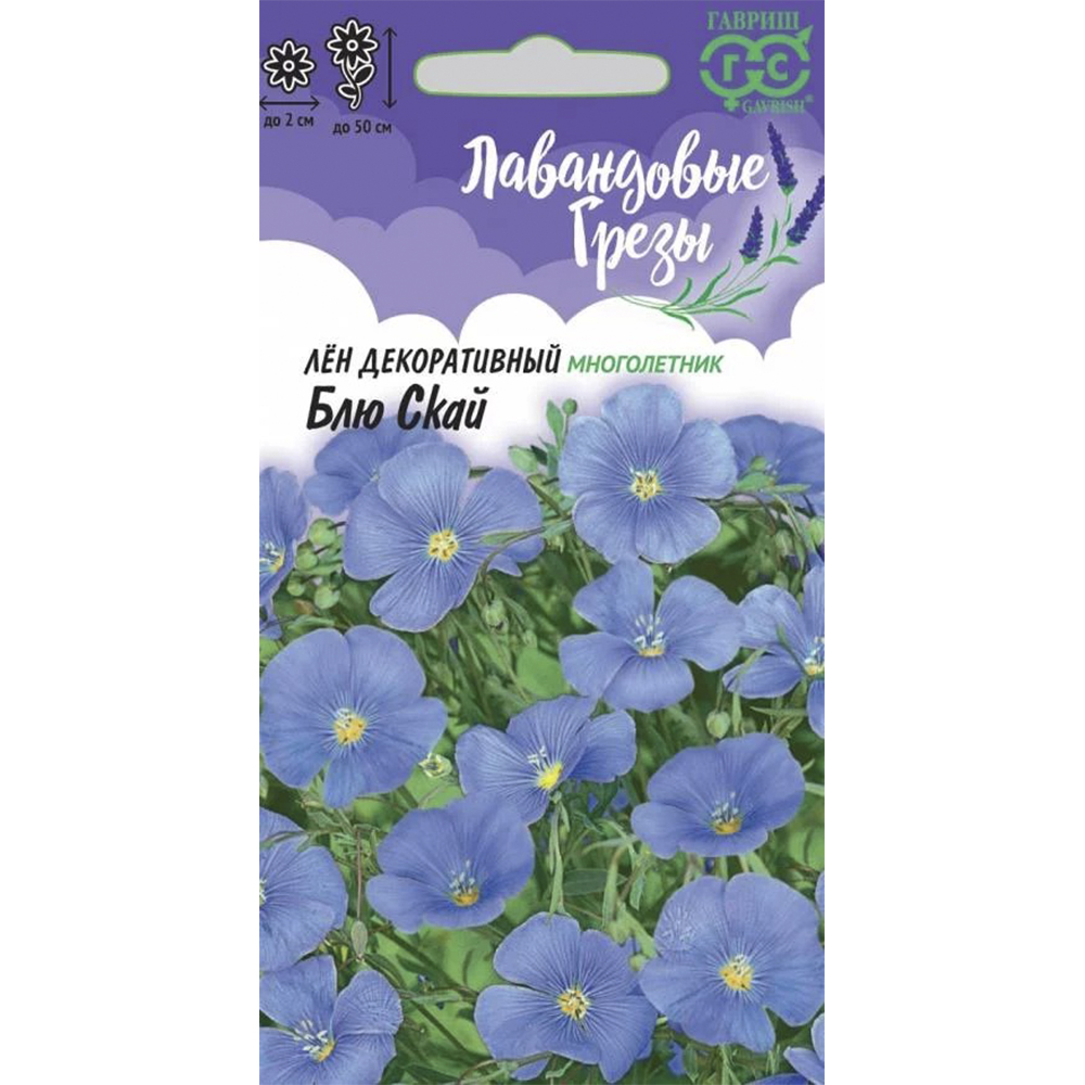 Многолетнее травянистое растение до 50 см высотой. Листья мелкие, линейно-ланцетные, расположены в очередном порядке. Цветки голубые до 2 см в диаметре. Цветет в июне - июле. Требует открытых солнечных мест, лучшего развития достигает на легких, плодородных почвах. Семена высевают под зиму или весной. Лен очень эффектен с другими многоолетниками, хорошо смотрится с гвоздикой травянкой, желтым седумом, белым карпатским колокольчиком.