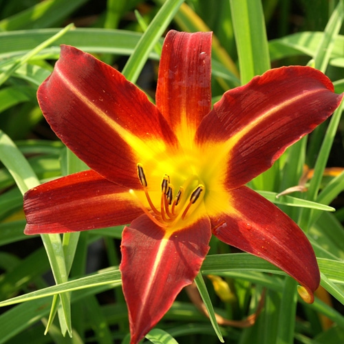 Саженцы лилейника Autumn Red по типу размножения являются диплоидами. В середине лета радуют взор удивительными яркими цветами средних размеров. Высота куста составляет 99 см, диаметр одного цветка – 10 см. Цвета невероятно красивые – резкий красный цвет лепестков легко сочетается с желтыми полосами и таким же горлом. По форме цветки напоминают звезды. Крупномер Autumn Red является весьма неприхотливым в быту, замечательно переживает зимние периоды. Дополнительной обрезки и накрытия осенью не требуется. Особенно ярко растение цветет под солнечными лучами.