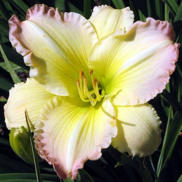 Саженцы лилейника Beautiful Edgings– многолетники, которые замечательно выносят зимние условия, и на следующий год приносят больше цветов. Весной кусты следует начинать высаживать в нежной песчаной почве, можно в глинистой, однако не рекомендуется это делать в чересчур тяжелой влажной земле. Цветы крупномера Beautiful Edgings имеют очень приятный вид – они воздушные, кремово-сливочные, на кончиках лепестков присутствует едва заметный розовый оттенок. Горлышко желто-зеленое, и красиво переходит в светлые полосы. Диаметр одного цветоноса составляет 18 см, высота куста – 76 см. Цветение происходит в августе, при этом по саду разносится душистый теплый аромат.