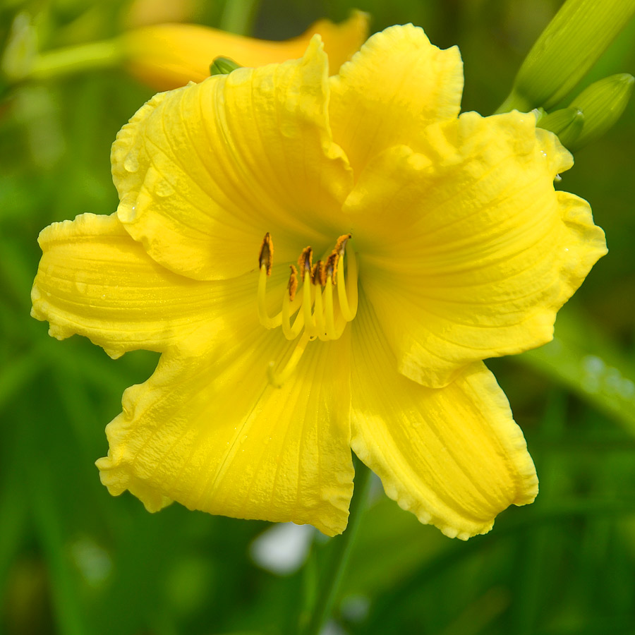 Саженцы лилейника Big Timе Hарру приносят очень ароматные цветки, имеющие ярко выраженную лимонную окраску. Края лепестков слегка взъерошены, горлышко зеленое, а пыльники на кончиках темные. Цветение повторное, начинается в конце мая. В высоту растение достигает 40 см. Диметр цветка – 12 см. Желательно сажать на открытых солнечных местах, можно в легкой полутени. Крупномер Big Timе Hарру морозостоек, прекрасно переносит зимние ветры. С наступлением тепла быстро покрывается зеленью и легко растет. Не требует особого ухода, любит в меру влажную почву.