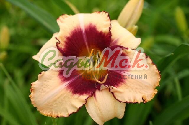 Саженцы лилейника Blush'n Pink Eye цветут в июле и в конце августа. Цветок светлый, кремово - персиковый, с нежно - розовым отливом, середка с красным центром, над большим, желто – зелёным горлом. Его диаметр составляет 15 см. Цветки крупномера Blush'n Pink Eye крупные, с отогнутыми и закрученными лепестками, немного взъерошенные гофрированные краями. Ароматный сорт. Тетраплоид. Легко приживается практически в любой земле. Супесчаные и суглинистые грунты, черноземы идеально подходят для этого сорта. Лилейник хорошо себя чувствует в любом грунте.