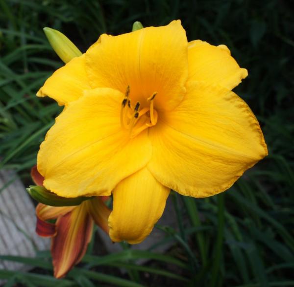 Саженцы гибридного лилейника Bу Mуsеlf – многолетники с крупным цветком. Золотистые лепестки с лимонным оттенком слегка гофрированные. Их диаметр 16 см. Время обильного цветения – август. Высота крупномера Bу Mуsеlf – 80 см. Яркое солнце не мешает лилейнику сохранять свой яркий цвет и не выгорать. Этот сорт отличается прочностью и плотностью лепестка. На ветке созревает 2-3 цветка. Месяца цветения - июнь и июль. Условия высаживания и ухода: обильно удобренное и солнечное место для посадки лилейника; верхний слой грунта при поливе должен оставаться сухим, а на глубине 20 см влажным, с помощью мульчирования; регулярный полив.