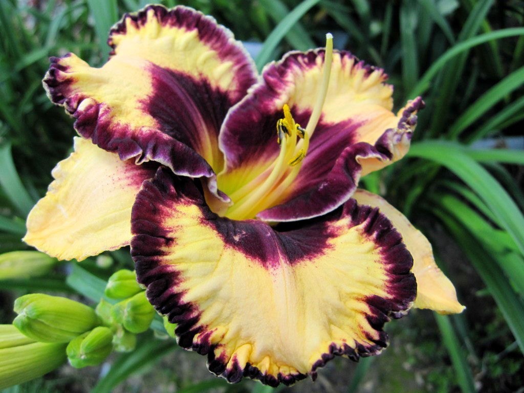 Саженцы лилейника Open My Eyes – это представители тетраплоидного типа, достигающие в высоту 60 см. Они отличаются повторным цветением, выносливостью и принадлежат к вечнозеленому типу. В период цветения дают гофрированные, кремово-бежевые цветы, с насыщенным винным глазом и каймой, с зеленым горлом. Они очень ароматные и обильно цветущие. Места для посадки необходимы открытые, солнечные, сами цветы вырастают до 15 см в диаметре, не выгорают и хорошо распускаются в любую погоду. Почва для посадки подходит глинистая увлажненная, удобренная, но не песчаная. Полив умеренный, под корень. Крупномер Open My Eyes– растение многолетнее, морозостойкое, не требовательное.