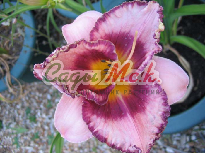 Саженцы лилейника Purple de Oro– это молодые гибриды, выведенные в 2000 году. Сорт низкорослый, примерно 48 - 51 см, но при этом образует 7 - 8 цветоносов с обильными соцветиями из бутонов. Цветок имеет розовато - пурпурный цвет и очень широкое горло золотистого цвета. Прожилки на внутренних лепестках ярко выражены и на два тона темнее основного цвета цветка, так же по центру лепестка четко видна белесая продольная линия. Края слабо - волнистые. В диаметре цветок не очень крупный, всего 7 - 8 см. Цветет крупномер рurрlе dе оrо на протяжении июля - августа. Устойчив к перепадам климата, на зиму отмирает, а весной восстанавливает рост.