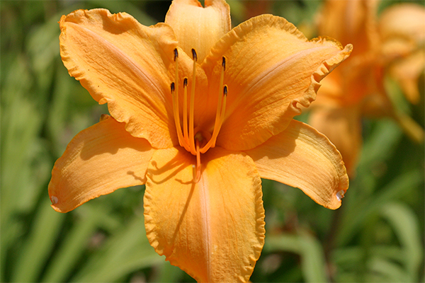 Саженцы лилейника Ruffled Apricot рано начинают прорастать, нетребовательны и любят солнечные лучи. Цветки диаметром 18 см, абрикосовые с розовой главной жилкой и золотистым горлом. Края лепестков гофрированные. Изысканная нежность приковывает взгляды. Высота его ароматных кустов может достигать 60 – 80 см. Предпочитает крупномер Ruffled Apricot солнечные места. Длительный ранне - средний срок цветения. Но не относится к ремонтантным сортам. Спящий тетраплоид. Кусты источают сильный приятный аромат. Благодаря искрящемуся на солнце абрикосовому цвету выглядят нарядно даже в пасмурную погоду.