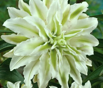 Лилия Double Lodewijk относится к группе восточных гибридов. Высота взрослого растения - 110 см. Цветок белый с зеленоватой полосой по центру лепестков, махровый. Средний диаметр цветка - 24 см. Сорт отличается высокой зимостойкостью. Зацветает в июле-августе.