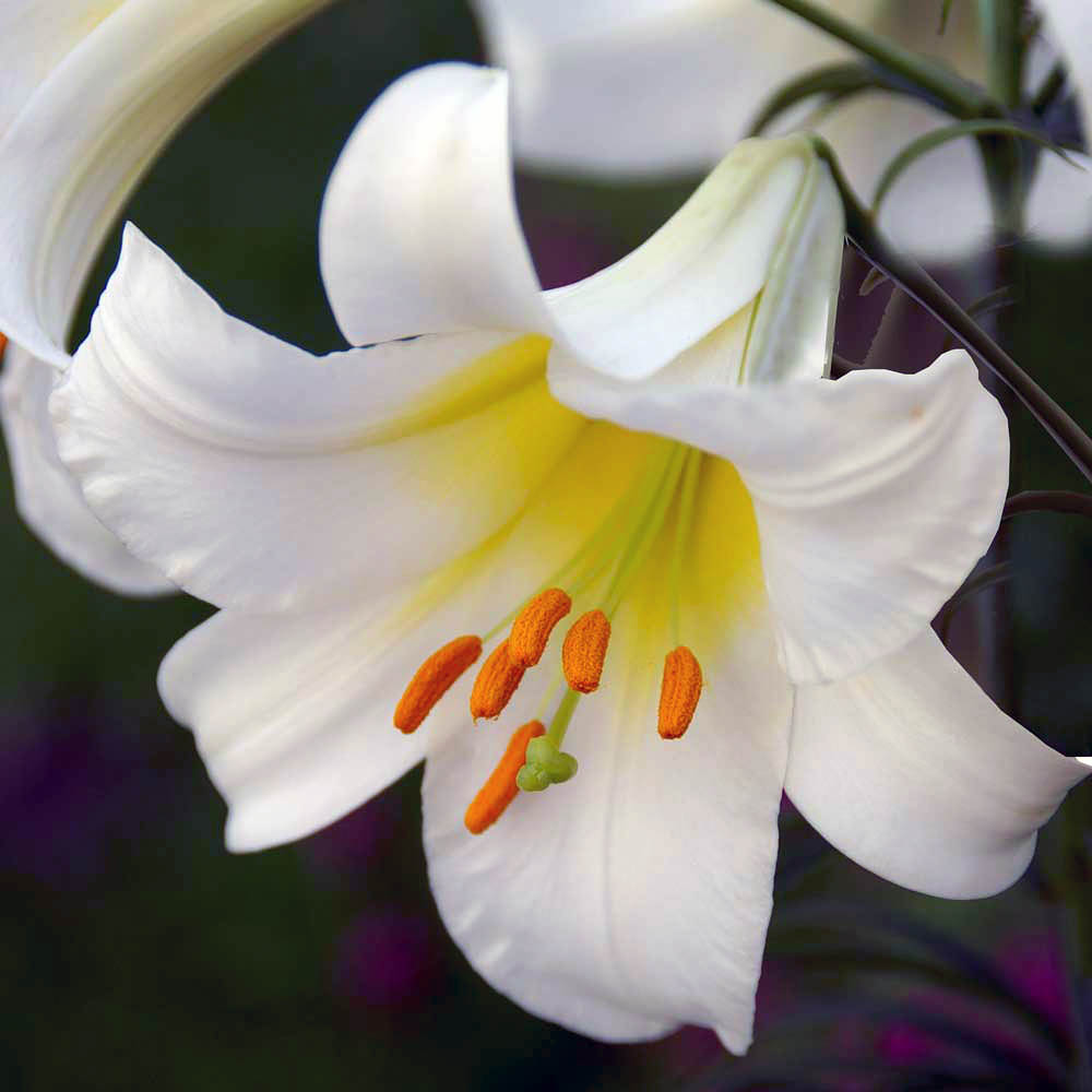 Лилия трубчатая Ригейл Альбум (Lilium trumpet Regale Album), которую принято называть королевской, бесспорно проявляет себя царственным растением с огромными и восхитительными цветами. Трубчатые лилии снежно-белого цвета выделяются эффектным и ярким желтым центром. Чарующий и невероятно сильный аромат, напоминающий жасминовый, как нельзя лучше характеризует величественные черты цветка, который при высоте 120 см возвышается над прочей растительностью сада. Высокая и мощная Лилия трубчатая Ригейл Альбум неприхотлива в уходе, но не может нормально развиваться на кислых почвах, требующих добавки специальных удобрений.