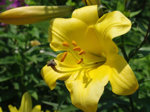 Лилия Royal Gold - трубчатый гибрид. Цветки размером 18-20см, золотисто-желтого цвета, с сильным пряным ароматом. В соцветии 5-8 цветков. Высота растения - 90 см. Цветет сорт в июле.
