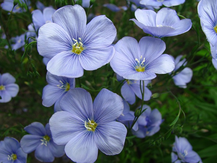Голубой лён поистине стал символом чистоты этого цвета. Надо учесть, что в природе не так уж много чисто голубых цветов. У этого сорта цветки небесно-голубого цвета. Куст раскидистый, с тонкими стеблями и ажурными листьями. Цветёт почти непрерывно с июня по июль, и с конца августа до заморозков. Через 2-3 года необходимо возобновлять растения путём посева семян. Растёт на любой хорошо дренированной почве. Великолепен в альпинариях и на лужайках в естественном стиле. После первой волны обильного цветения следует обрезать стебли до подушки листьев, чтобы стимулировать повторное цветение.