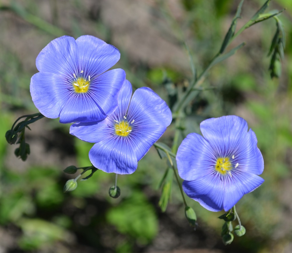 Многолетнее травянистое растение до 50 см высотой. Листья мелкие, линейно-ланцетные, расположены в очередном порядке. Цветки голубые до 2 см в диаметре. Цветет в июне - июле. Требует открытых солнечных мест, лучшего развития достигает на легких, плодородных почвах. Семена высевают под зиму или весной. Лен очень эффектен с другими многоолетниками, хорошо смотрится с гвоздикой травянкой, желтым седумом, белым карпатским колокольчиком.
