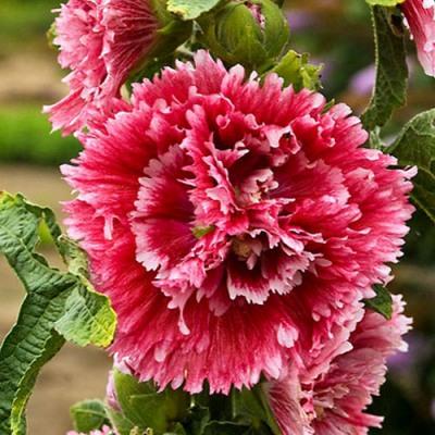 Соцветия представлены в виде бутонов, оригинальной, очень насыщенной окраски, с махровыми густыми и плотными лепестками. Такое чудо селекционной мысли способно порадовать любого садовода и просто ценителя всего прекрасного. На складчатых лепестках красный цвет постепенно переходит в насыщенно малиновый тон, а у самых краёв – в белый. Растения идеально впишутся в любую растительную композицию, хорошо подходят для праздничного оформления помещений. Особенно хороши цветы яркой мальвы в срезанном виде, они долго сохраняют свой превосходный свежий вид.