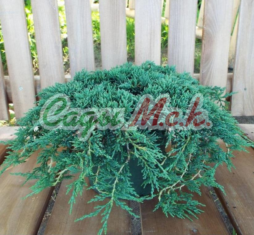 Кустарник стелющийся, почвопокровый. Цвет зелёно-голубовато-серебристый, зимой фиолетоватый.