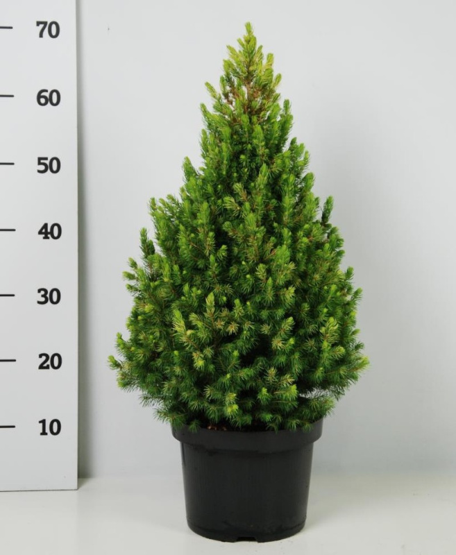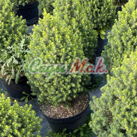 Ель канадская Дейзи Уайт (Picea glauca Daisy's White) - очень декоративная ель конусовидной формы. Ель канадская Дейзи Уайт (Picea glauca Daisy's White). Высота взрослого растения 2-3 м. Хвоя ярко-зеленая, мягкая, особенно декоративна с появлением весной молодых приростов желтовато-белого цвета в мае-июне. Молодой весенний прирост может обгорать от весеннего солнца.