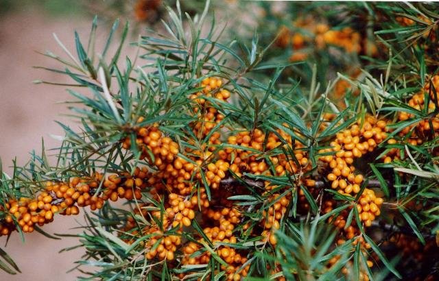 Саженцы облепихи Ароматная имеют листья зеленые, с серебристым налетом, слабо опушенные. Куст с округло-раскидистой кроной, среднерослый. Хорошо формируется, предпочитает омолаживающую обрезку побегов. Крупномер Ароматная зимостоек, влаголюбив, светолюбив. В почке 7 - 8 цветков, из которых обычно формируется 5 - 7 плодов. Плоды оранжево-красные, округло-продолговатые, блестящие, с небольшим красным пятном на вершине. Мякоть сочная, кожица плодов плотная, с ароматом. Срок созревания средний. Сорт высокоурожайный. Плоды с повышенным содержанием витамина С (до 185 мг%), каротиноидов (до 6 мг%). Назначение техническое. Транспортабелен.
