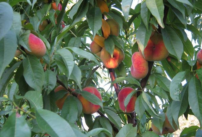 Персик инжирный Владимир - созревает в начале августа. Дерево среднерослое.Окрас белый со светло-красным румянцем, похож на инжир и имеет характерную сплюснутую форму, пушок на его кожице значительно короче, чем на обычных сортах. Мякоть очень сладкая, кремового цвета, обладает прекрасным вкусом, равномерно распределенным по всему фрукту, что обычным видам не свойственно. Отличается высокой урожайностью и меньше других подвержен заболеваниям.