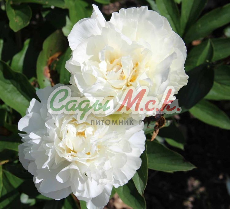 Травянистый пион Avalanzh махровый бомбовидный. Цветок диаметром 15-16 см, компактный, розовеюще-белый с чуть розовым центром и узким малиновым краем на некоторых лепестках. Аромат сильный приятный, но не сладкий. Высота 90 см. Срок цветения средне-поздний.