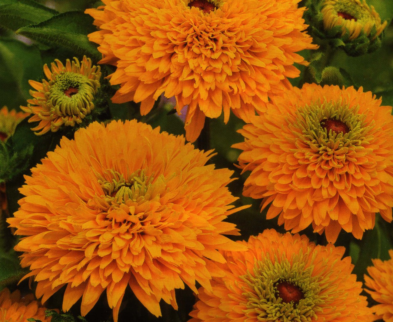 Рудбекия Maya - однолетнее травянистое растение 45-50 см высоты. Корзинки 9-12 см диаметром, одиночные, верхушечные, густомахровые. Язычки многорядные, длинные, линейные, к верхушке суженные или заостренные, зубчатые, яркие, светло-золотисто-желтые. Дисковые цветки пурпурно-коричневые, немногочисленные, некоторое время практически незаметные, образующие очень мелкий конический диск.