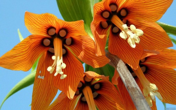 Рябчик императорский Сольферино - вариация с оранжевыми цветками, покрытыми сетью красно-пурпурных прожилок. Основание цветка чисто-черное с оранжевыми пятнами. Тычинки оранжевые, пыльники кремово-белые. Высота взрослого растения достигает 80-100 см.
