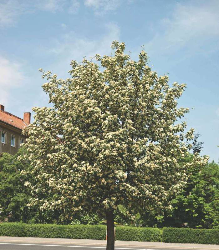 Промежуточная рябина или Шведская, скандинавская – это высокое дерево (до 5 м), которое хорошо приживается в российских широтах благодаря устойчивости к морозам.Шведская рябина дает сладкие, довольно вкусные кисло-сладкие ягоды оранжевого цвета, что выгодно отличает его от обыкновенной. Еще одно преимущество – крона у дерева формируется самостоятельно. Растение не требует особого ухода, поэтому с выращиванием справится садовод с любым опытом