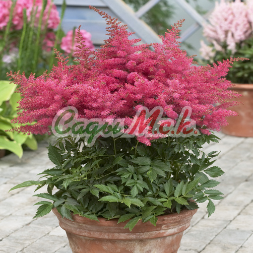Саженцы астильбы Amerika восхищают удивительным блеском своих метельчатых и ромбических лилово-сиреневых соцветий. Этот голландский сорт заслуженно считается одним из самых красивых и пользуется большой любовью среди ценителей роскошных декоративных растений. Важными преимуществами саженцев данного сорта являются их неприхотливость и не капризность.