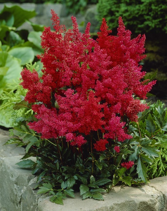 Саженцы астильбы Grаnаt просто влюбляют в себя, когда видишь их прекрасные соцветия невероятно интенсивного и насыщенного пурпурно-красного цвета. Главные особенности этого сорта: очень быстрый рост и мощная корневая система. Это очень сильное и неприхотливое растение с высокой устойчивостью к садовым вредителям и болезням. В отличие от большинства астильб представленный сорт прекрасно растет и на солнце, и в тени/полутени.