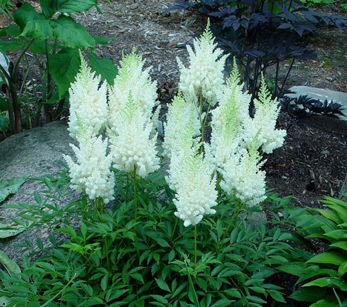 Крупномер Wеissе Glоriа вырастает до 65-70 см. Этот сорт прекрасно смотрится в одиночных и групповых посадках. Кроме того, данную астильбу можно выращивать в контейнерах, та что ее изящные соцветия могут украсить террасу или балкон.