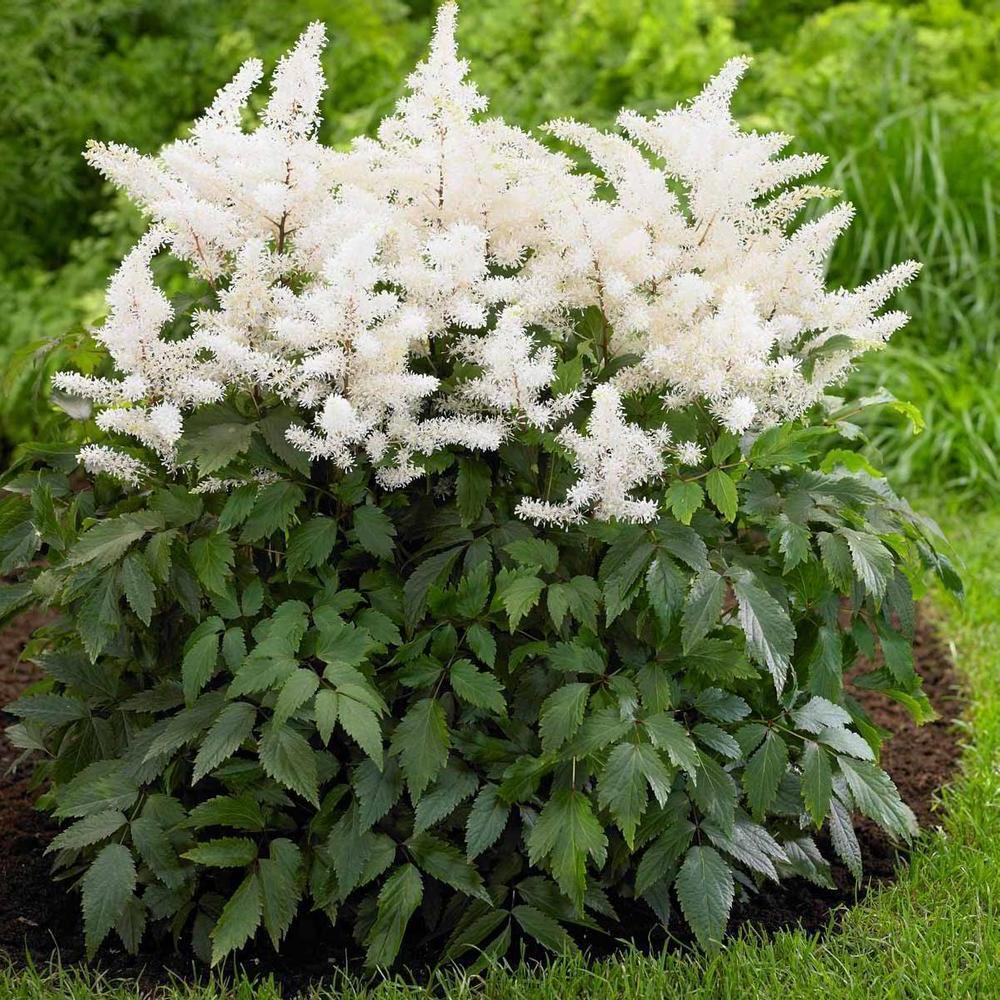 Саженцы астильбы Rосk аnd Rоll полностью оправдывают свое хулиганское музыкальное названием, ведь их слегка растрепанные белоснежные метелки-соцветия на фоне красноватых стеблей позволяют создать очень живые и контрастные цветочные композиции. Этот среднерослый сорт цветет в августе. Саженцы отлично развиваются в полутени, а также будут хорошо расти на солнце, если обеспечить им обильный полив.