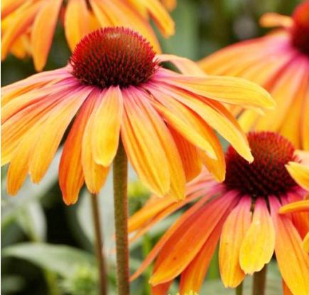 Эхинацея пурпурная Рейнбоу Йеллоу - это аккуратный кустик высотой до 60 см с густо облиственными стеблями. Цветочки крупные, с вытянутыми лепестками. Цветки имеют насыщенный желтый цвет, который ближе к середине лепестков приобретает розовый оттенок. Время цветения – июль-сентябрь. Растение устойчиво к заболеваниям и хорошо смотрится в групповых посадках.