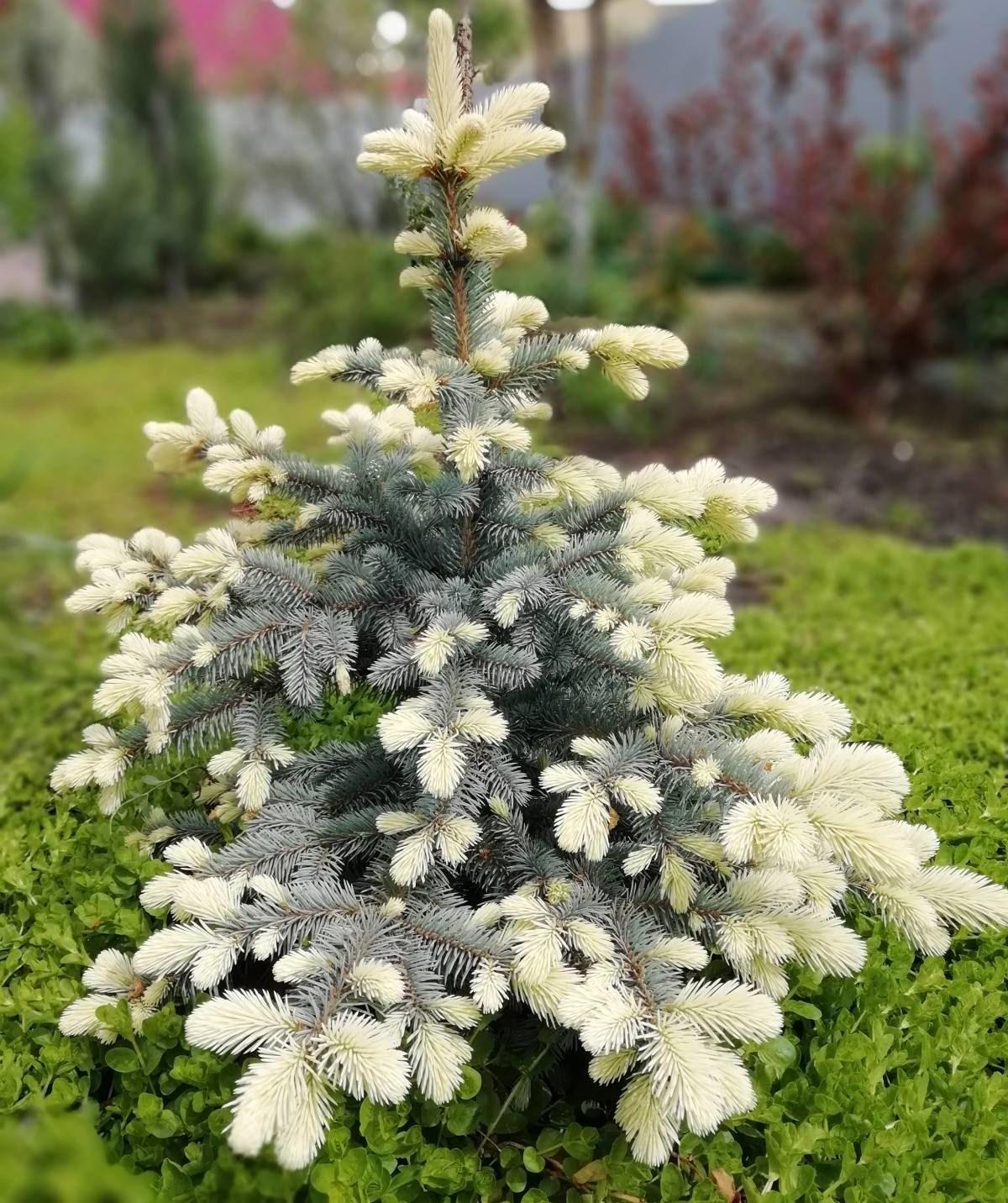 Медленнорастущее, декоративное деревце дает в год прирост около 15 см. Тем не менее, к 10 годам достигает 2 м в высоту, диаметр кроны – около 1 м. Крупномер колючий Bialobok особенно привлекателен весной, когда отрастают молодые побеги, покрытые лимонными, светло-салатовыми иголками, контрастирующими с темно-зеленой старой хвоей. Крона плотная, неправильной формы. Саженец предпочитает открытые, солнечные участки или полутень. Деревце используется в одиночных посадках.