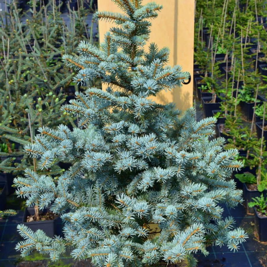 Ель колючая Blue Trinket - дерево с густой конусовидной кроной. Высота взрослого растения 2 м. Хвоя серо–голубая, очень короткая, острая и торчащая. Ветви образуют правильные плотные ярусы вокруг ствола от самой земли до вершины. Зимостойкость высокая. Эта ель светолюбива, хорошо развивается в легкой полутени. К почвам нетребовательна, засухоустойчивая, рекомендуется для колористических групп, для групповых и одиночных посадок.