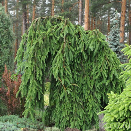Ель канадская Frohburg - плакучая форма с чётко выраженным прямым стволом и свисающими боковыми побегами. Ветви опускаются вниз и ковром покрывают подножие растения. При подвязывании ствола к опоре можно сформировать зонтичную крону. Хорошо смотрится в одиночной посадке. В возрасте 10 лет достигает высоты 2 м. Хвоя игольчатая, зелёная.