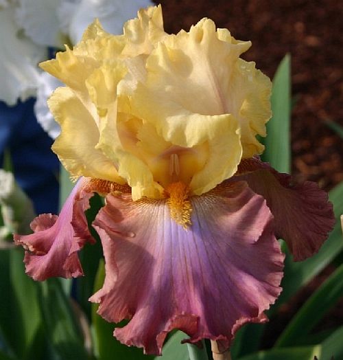 Рассада ириса High Chaparral характерна разветвленными высокими цветоносами (свыше 90 см), огромными размерами цветов и красивой гофрировкой. Стандарты (верхние доли) – желтые пастельные с более яркими соломенными краями. Фолы (нижние доли) - переливчатые, розовато-коричневые, этот цвет еще называют папайя. Бородки – желто-оранжевые. Лепестки кружевные, сильно гофрированные. Сроки цветения поздние. Этот привлекательный сорт обязательно становится любимцем на участке.