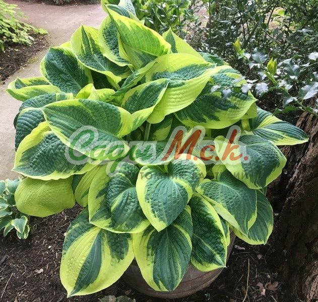 Хоста Аmеriсаn Hаlо – достаточно заметное растение, основным украшением которого являются крупные двухцветные листья. Мощный куст представляет собой большой плотный купол, образованный плотными, слегка рифлеными листовыми пластинами. Синие, с темно-зеленой серединкой и красивым желтовато-зеленым «перьевидным» краем, особенно интересно они выглядят в пору цветения. Нежные белые цветки на длинных цветоносах эффектно подчеркивают такую красоту. Как и все голубые хосты, этот сорт отлично растет в тени, но вполне нормально переносит и солнце. Он устойчив к повреждению слизнями и уликами, быстро разрастается, поэтому является идеальным вариантом для ландшафтного дизайна.