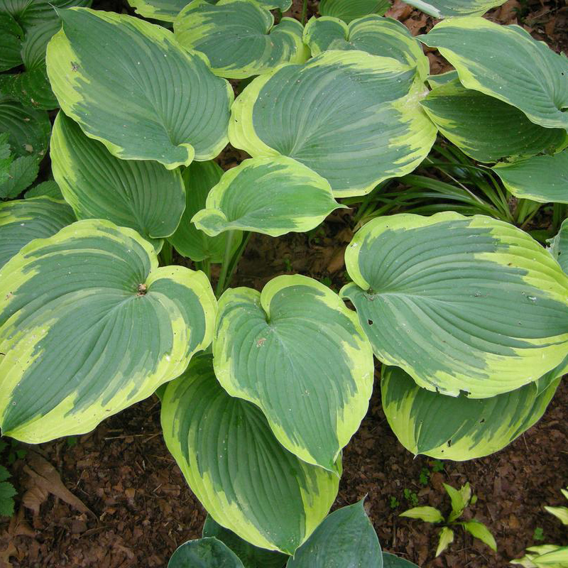 Хоста гибридная сорта Эс Энджел позволит вырастить достаточно крупное многолетнее растение, которое обладает раскидистыми двухцветными листьями. Кусты не плодоносят, но используются для создания необычных композиций в ландшафтном дизайне. В среднем, высота кустарника составляет 40 см и метр в ширину. Листья имеют очень необычную и неравномерную окраску. На них гармонично сочетаются темно-зеленый и светло-зеленый оттенки. В период цветения на побегах появляются крупные цветки похожие на колокольчики, светло-фиолетовой окраски. Без необходимости пересадки, Хоста гибридная Эс Энджел может расти на одном месте до 20 лет.