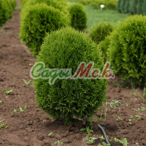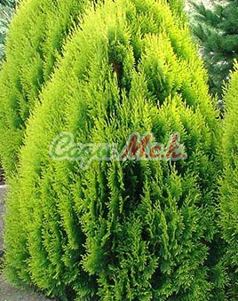 Туя западная Hoveyi - карликовый кустарник 1-1,5 м высоты. Крона округлая или яйцевидно-округлая, компактная. Побеги расположены в вертикальной плоскости, как у туи восточной, тонкие, прямые, красноватые. Хвоя летом ярко окрашенная, светло-зеленая, матовая, зимой коричневая.