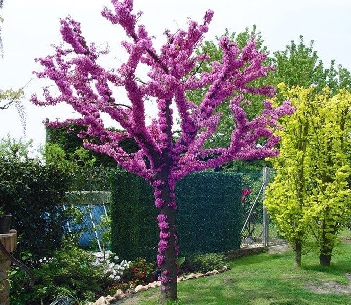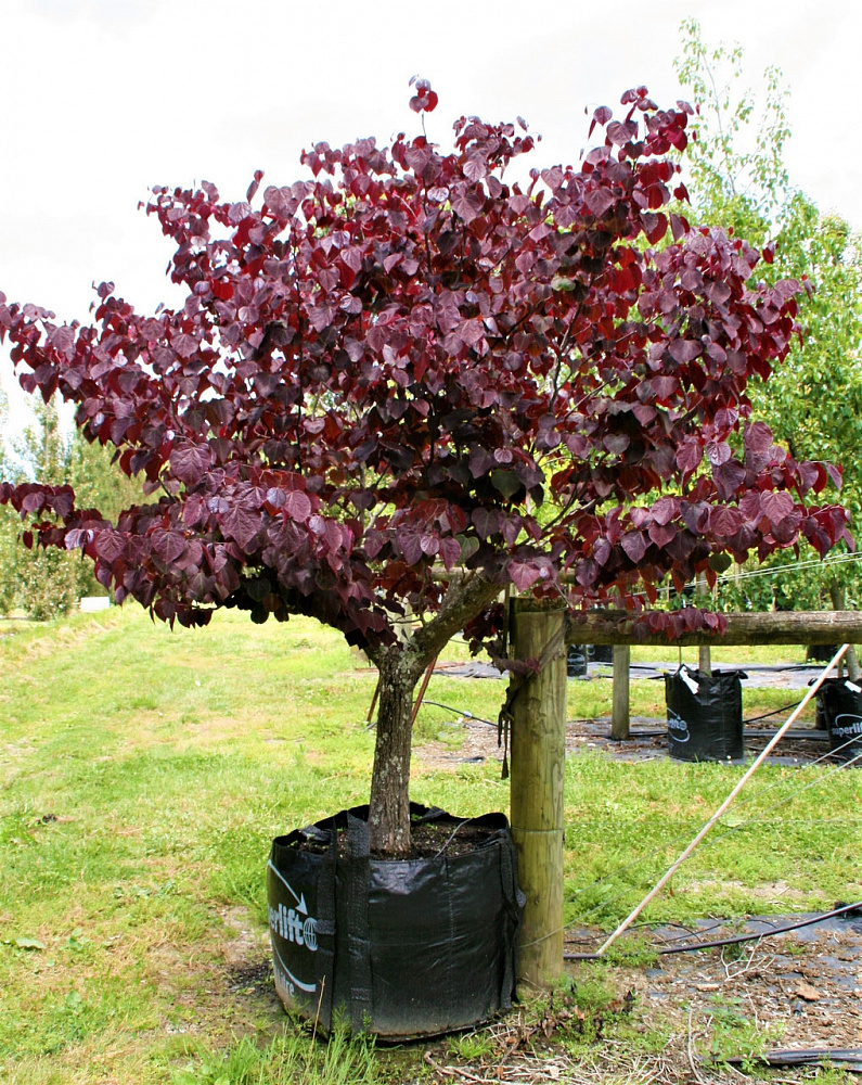 Крупный кустарник или небольшое дерево, тонкоствольное, с широкой кроной, растет быстрее чем Cercis siliquastrum. Все экземпляры очень живописны, их мощные искривленные стволы достигают толщины 30 см, ветви раскидистые. Размер: Высотой и шириной 6-8 м.