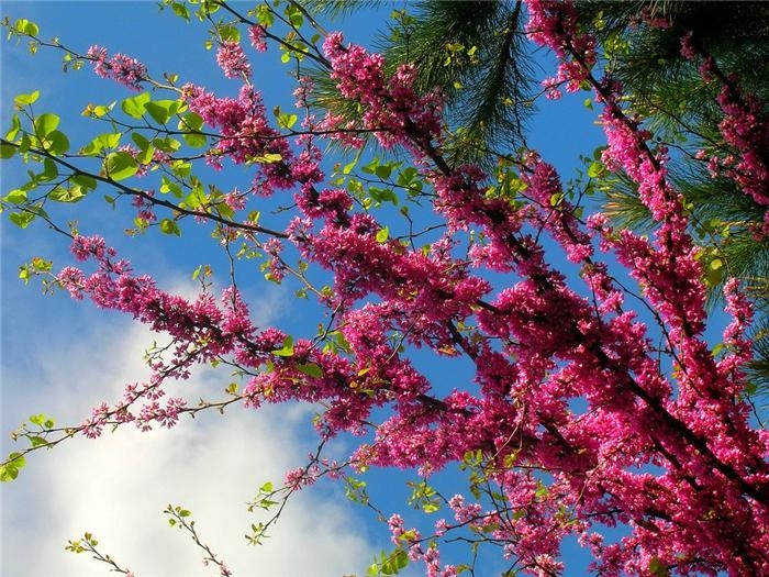 Церцис канадский – дерево до 12 метров в высоту, устойчивое к морозам и засухе. Характерные черты канадского церциса:крупная листва до 16 см в длину, темно-зеленая с сизым отливом летом и светло-желтая осенью. Форма листьев может быть как сердцевидная, так и широкоовальная; цветение – дерево дает светло-розовые красивые цветы пушистыми пучками по 4-8 бутонов. В сентябре на дереве созревают бобы около 6 см в длину. Они могут висеть до 2 лет.
