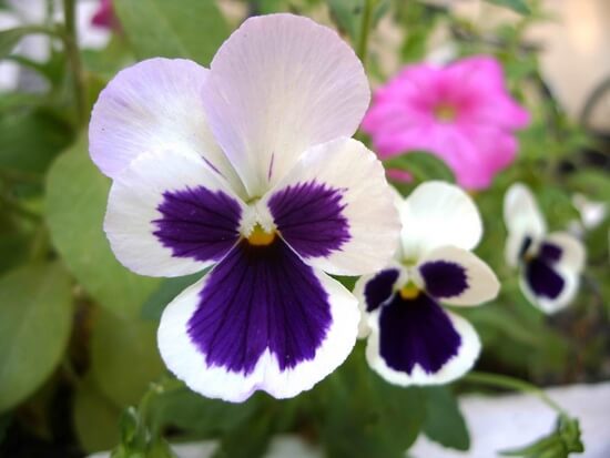 Виола сорта Jupiter — это цветок с интересной расцветкой: его нижний трилистник фиолетовый с белой каймой, а два верхних крупных лепестка чаще всего. Куст невысокий — 15-20 см, образован ветвистыми стеблями, покрытыми овальными листьями. Предпочитает открытые солнечные участки сада, но неплохо приживаются и в полутени. Любит рыхлую влажную почву с большим содержанием питательных веществ.